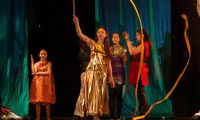 In fremden Sphären dürfen wir erleben, wie Oma Galaxos vor ihrem Ableben den zahlreichen Himmelskörpern Andenken vererbt: Die Sonne (glanzvoll gespielt von Isabelle Plewa) bekommt ein Zitroneneis und fast vermutet man eine Anspielung auf den fortschreitenden Klimawandel; die Kometen erhalten Skateboards, um fortan mit verschärfter Lichtgeschwindigkeit unterwegs sein zu können und der kleine Pluto (Nihal Rapp: Bravo!) bekommt die magische Kristallkugel, die ihr leider vom bösen schwarzen Loch ( Amina Hatic) wieder entrissen wird. Doch die zauberhafte Venus (Olha Dolapchi) und die rasenden Kometen machen sich gleich an die Rückeroberung.