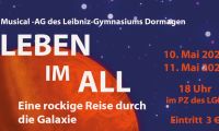 Im ausverkauften PZ des Leibniz-Gymnasiums durften sich die zahlreichen Zuschauer*innen mit auf eine unterhaltsame Reise über die Milchstraße bis in ferne Galaxien begeben.