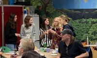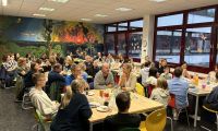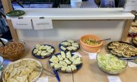 Alle Gastschülerinnen und -schüler kamen mit ihren Austauschpartnerinnen und -partnern und deren Eltern im so genannten Dschungel-Raum in unserer Schule zusammen. Es gab ein großes Buffet mit polnischen und deutschen Leckereien, die die Familien gemeinsam vorbereitet hatten.