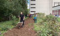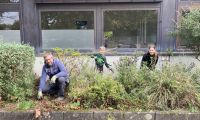 Eins der größten Projekte war auch in diesem Jahr der Schulgarten. Dort wurden Wege gemulcht, Unkraut gezupft, Blumen gepflanzt und vieles mehr. Auch das Insektenhotel wurde auf Vordermann gebracht.