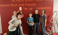 Außerdem wurden wie in jedem Jahr zahlreiche Klassenräume und Flure gestrichen und auch die Säulen unter dem Pausenvordach erstrahlen jetzt in den LGD Farben. Weitere Projektgruppen strichen die Stitzsteine auf dem Schulhof, putzten Fenster und Zwischentüren und es gab eine Müllsammelaktion.