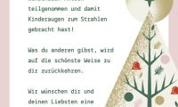 Auch in diesem Jahr gab es von den Einrichtungen selbstgebastelte Geschenke als Dankeschön. Außerdem wurde Frau Bark stellvertretend wieder zu einigen Weihnachtsfeiern eingeladen und erlebte dort die große Wärme und Dankbarkeit der Kinder. Ein wunderschönes Erlebnis, das zeigt, wie sehr unsere Aktion wirkt.