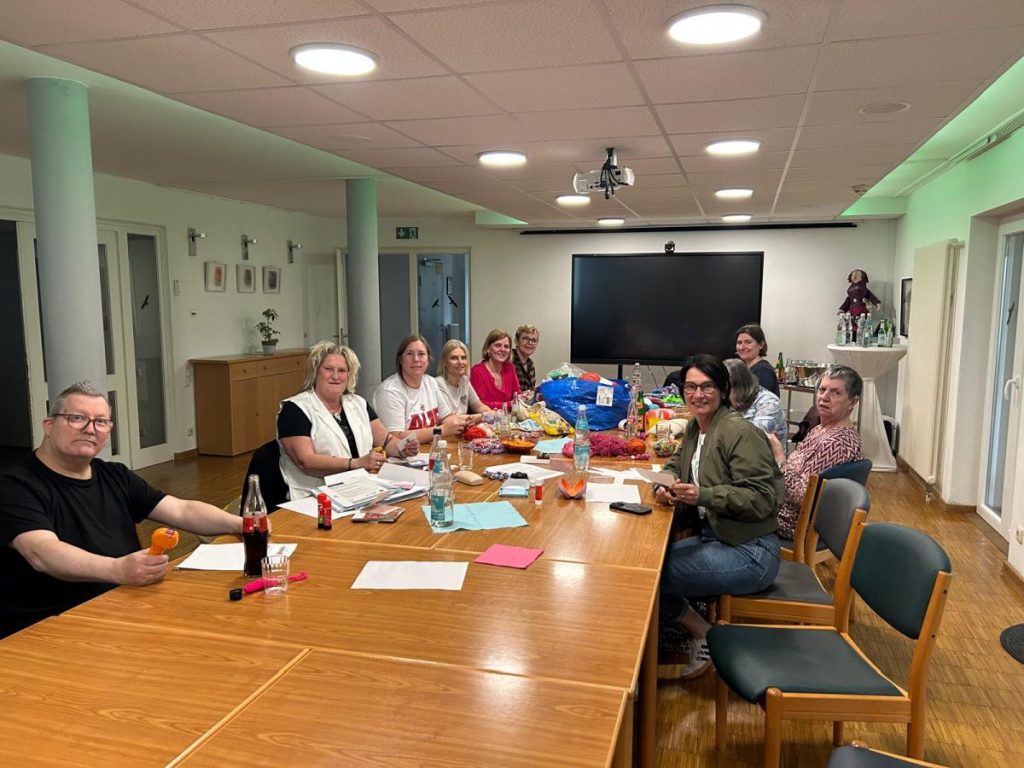 Im März dieses Jahres besuchten drei Mitglieder des Elternstammtischs das Haus der Lebenshilfe in Nievenheim. Dort wurden 30 Bewohnerinnen und Bewohner sowie 28 Mitarbeitende mit Glückswürmchen überrascht. Die herzliche Geste wurde mit großer Dankbarkeit aufgenommen. Aus dieser Begegnung ist inzwischen eine schöne Tradition entstanden: Einmal im Quartal wird nun gemeinsam mit interessierten Bewohnerinnen und Bewohnern gehäkelt.