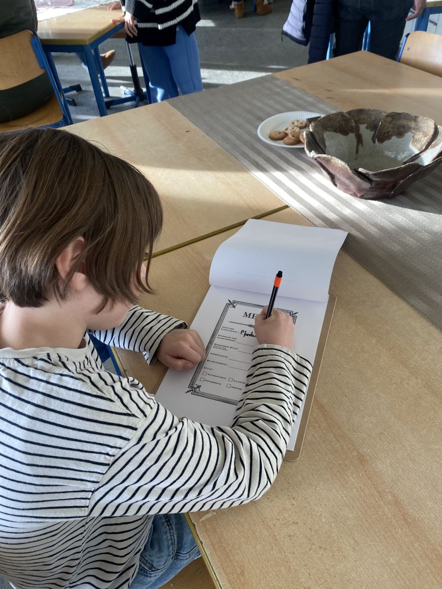 Im KI-Café hatten die Besucher die Möglichkeit, kreativ zu werden. Wer kennt das nicht? Man hat eine Vorstellung im Kopf, die sich oft schwer auf das Papier übertragen lässt. Im KI-Café schrieben unsere kleinen Gäste ihre Wünsche auf die Menükarte, die dann mit Hilfe von Künstlicher Intelligenz in beeindruckende Kunstwerke verwandelt wurden.